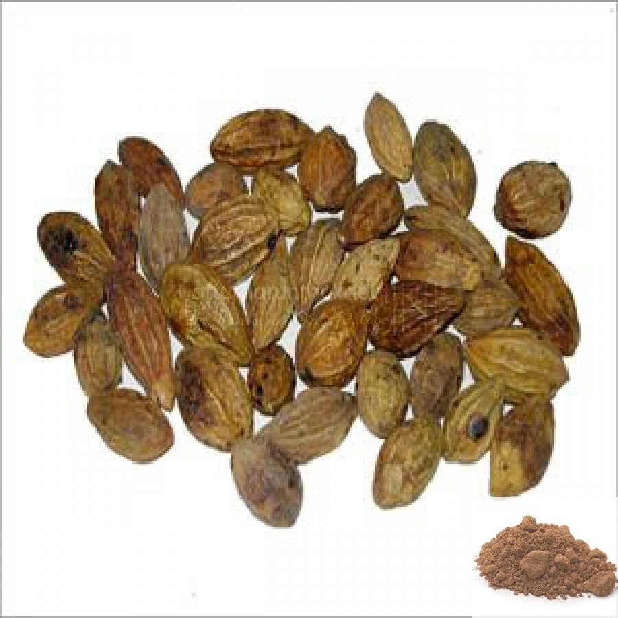 Kadukkai Maram is a tree that is very long and is 8-12 ft thick. The bark is dark brown. Leaves are 3-8 inches long and 2-4 inches wide, hanging down in clumps and oval in shape. The stem of the leaves has two knots at the apical end. The plant bears flowers that are small, yellowish, and grow on long white clusters. The fruits are 1-2 inches long, oval and the back surface has 5 prominent stripes. The fruits which are plucked before seed formation are known as Harad. These are dark yellow. The fruits which are plucked when completely ripe are known as big Harad. Harad tree is found in hilly areas and forests up to heights of 5000 ft. Basically, it is found in lower Himalayan areas from Ravi banks to Western Bengal, Assam, and in the forests of high land areas.