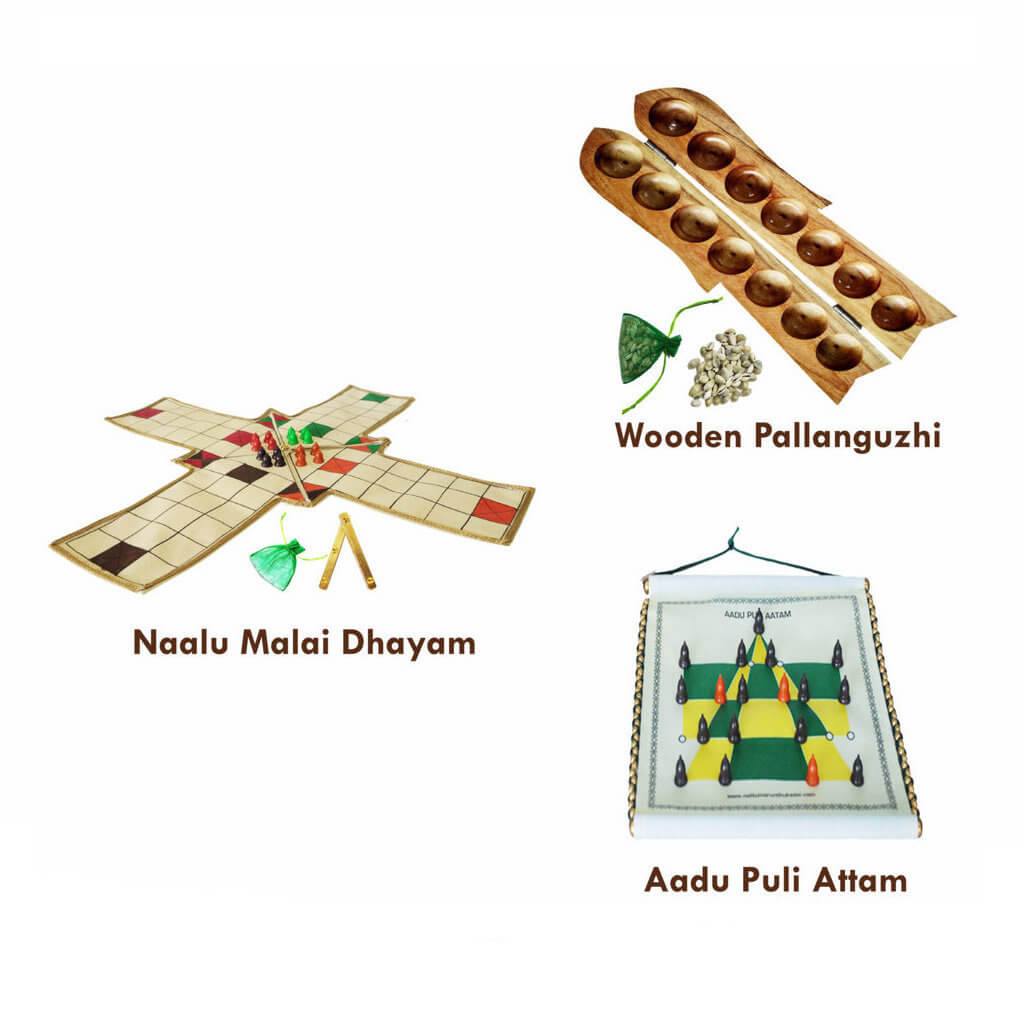 Ancient Games Combo Pack (Naalu Malai Dhayam + Pallaguzhi + Aadu Puzhi Aattam)