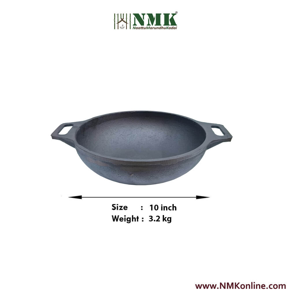 Cast Iron Kadai 10 inch online , Preseasoned Cast Iron Vanali 10 inch , buy iron tawa online, Buy cast iron tawa online, Health benefits of cvast iron tawa, Buy Grill Pan online, Bye cast iron grillpan online, buy pure iron tawa online, how to season cast iron cookware, buy irumbu kadai online, buy irumbu dosa tawa online, Buy Iron Skillet online, Buy cast iron products online, Buy Iron Kadaai online, Buy Ironware products at NMKonline.com (NattuMarunthuKadai.com)