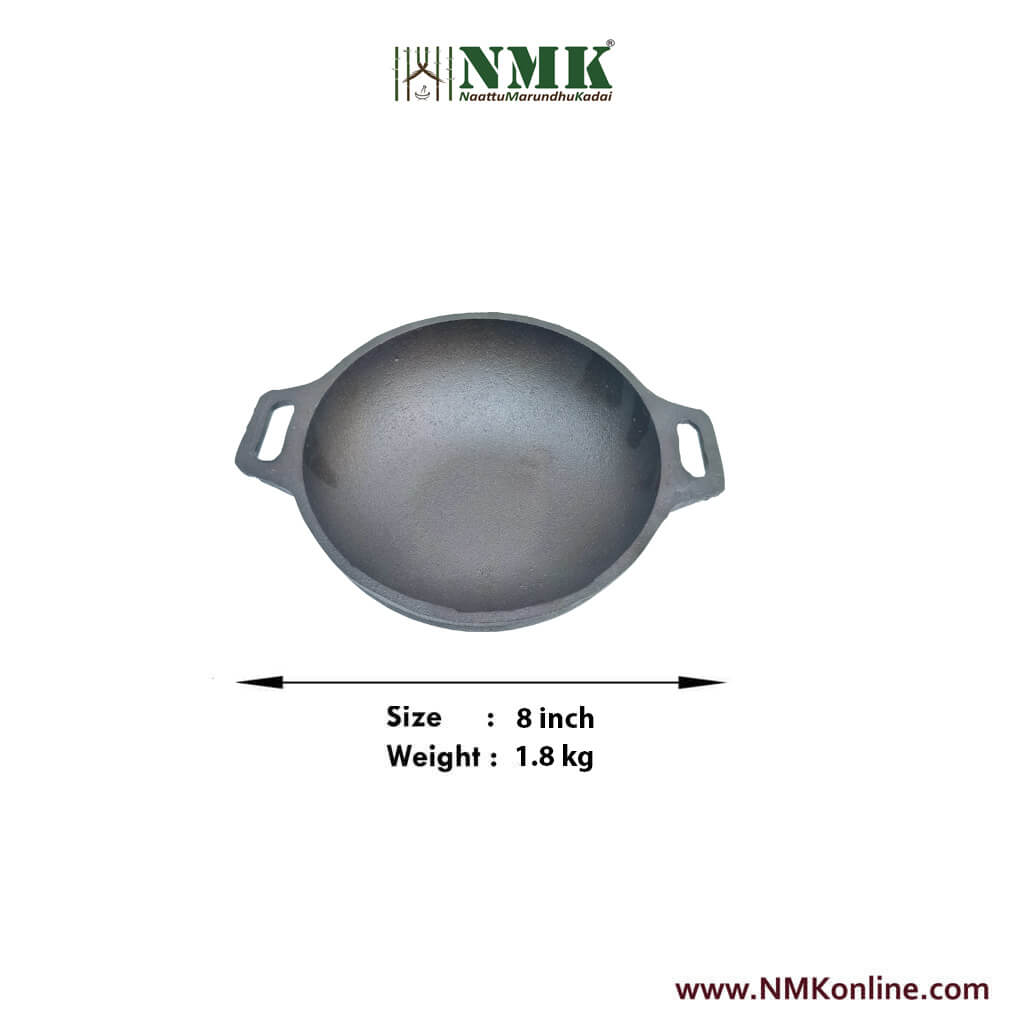 Cast Iron Kadai 8 inch online , Preseasoned Cast Iron Vanali 8 inch , buy iron tawa online, Buy cast iron tawa online, Health benefits of cvast iron tawa, Buy Grill Pan online, Bye cast iron grillpan online, buy pure iron tawa online, how to season cast iron cookware, buy irumbu kadai online, buy irumbu dosa tawa online, Buy Iron Skillet online, Buy cast iron products online, Buy Iron Kadaai online, Buy Ironware products at NMKonline.com (NattuMarunthuKadai.com)