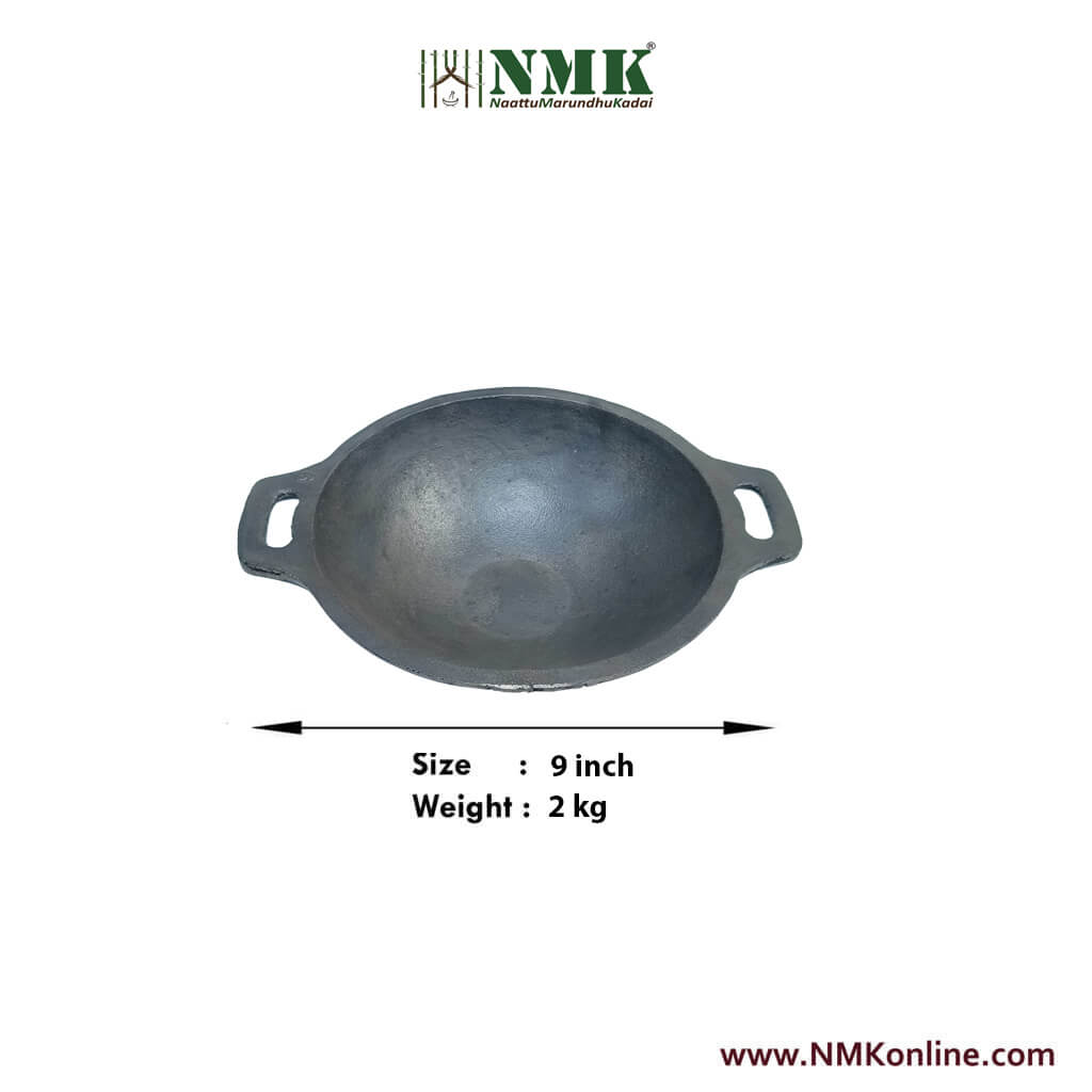 Cast Iron Kadai 9 inch online , Preseasoned Cast Iron Vanali 9 inch , buy iron tawa online, Buy cast iron tawa online, Health benefits of cvast iron tawa, Buy Grill Pan online, Bye cast iron grillpan online, buy pure iron tawa online, how to season cast iron cookware, buy irumbu kadai online, buy irumbu dosa tawa online, Buy Iron Skillet online, Buy cast iron products online, Buy Iron Kadaai online, Buy Ironware products at NMKonline.com (NattuMarunthuKadai.com)